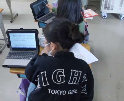 タブレットを使って、いろいろな仕事の工夫について調べています。