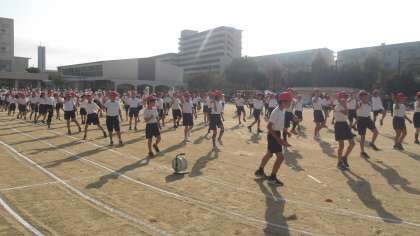 体育委員の児童がみんなのお手本となり、みんなしっかりと体操することができました。