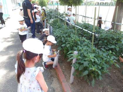 西山さんに育てていただいた夏野菜を収穫させてもらいました。