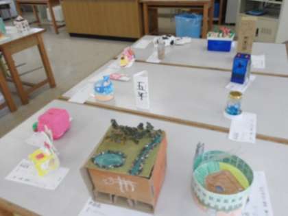 夏休みの作品を家庭科室に展示しています。作品展は本日までです。