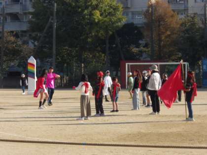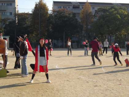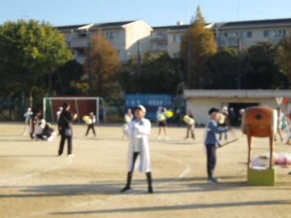 教頭先生も応援団に演技や声出しの指導を行っています。