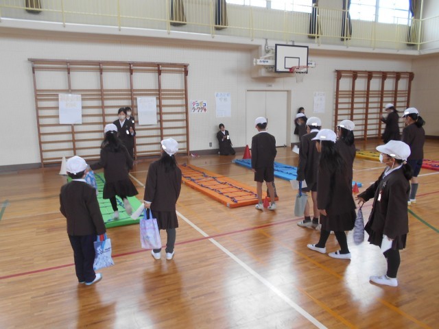 2月3日~14日まで、体力向上や楽しく体を動かすことを目的として、体育委員会が中心となって「五箇荘ランド2」を昼休みの時間に体育館で行いました。たくさんの児童が参加していました。