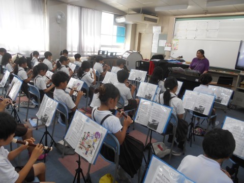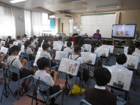 音楽室をのぞいたときは、リコーダーの学習をしていました。ひとつひとつの音をていねいに出そうと心がけていました。きれいな音色が聴こえてきました。