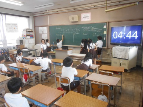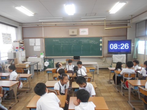 「ろうかや教室を走らず歩こう」という目標を、どうしたら守ることができるか、グループで話し合っていました。