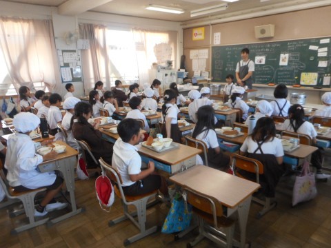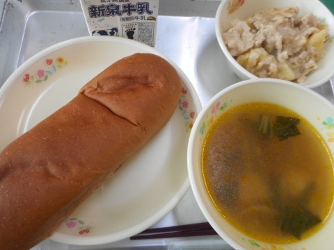 今日の給食は、ココアパン、牛乳、肉団子スープ、豚肉のみそマヨ炒め、でした。