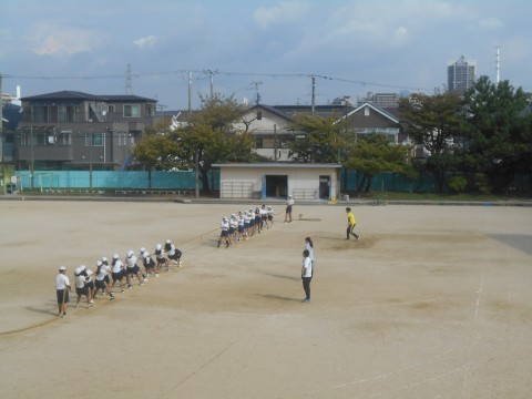 連合運動会に向けて、今日も練習に励みました。力を合わせて頑張ります。