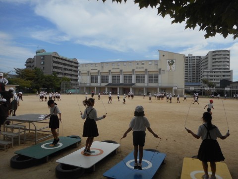 運動場で遊ぶこどもたちが、どんどん増えてきました。