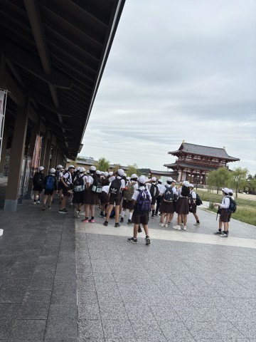 平城宮跡に着きました。この後、クラス写真を撮って、オリエンテーリングをします。