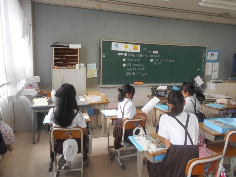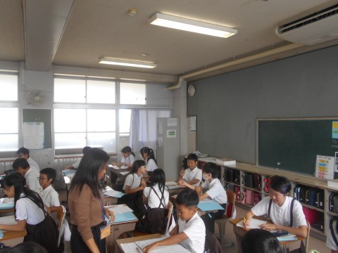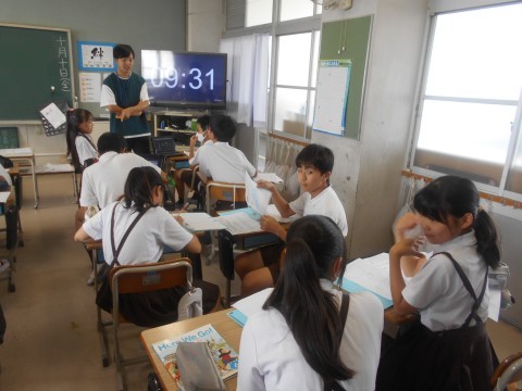 グループで夏休みの思い出を英語で発表し合っていました。今日はNSの先生も一緒に学習しました。