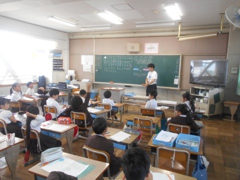 「6×4」の答えの求め方について考えていました。いろいろな考えを出し合っていました。