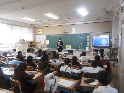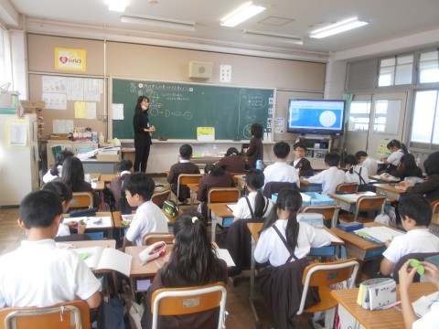 円の中心の見つけ方を考えていました。自分の水筒の底を使って画用紙に円を描いて、試行錯誤しながら学んでいました。