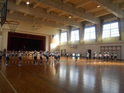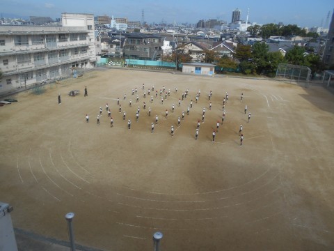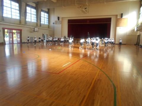 体育大会の練習をしていました。少しひんやりした朝でしたが、子どもたちは元気いっぱい練習していました。