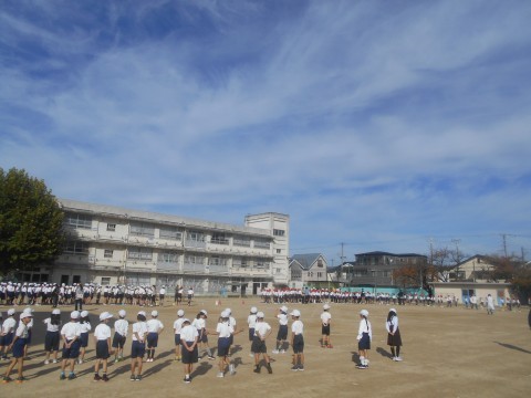いよいよ次の土曜日が体育大会です。今日は朝から全学年で全体練習を行いました。主に開会式・閉会式・大玉おくりの並び方、新堺っ子体操について練習しました。