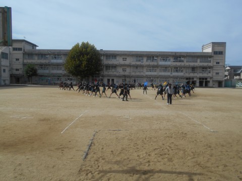体育大会の練習をしていました。自分で作った法被を着て練習していました。