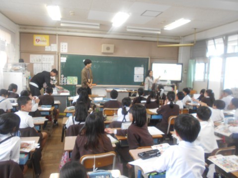 アルファベットの学習をしていました。今日はNSの先生も一緒に学習しました。