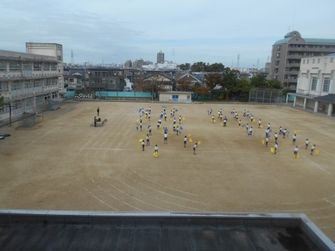 体育大会の練習をしていました。徒競走とフラッグの練習をしていました。