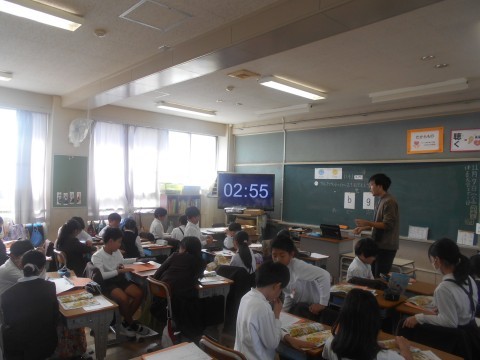 アルファベットの学習をしていました。ペアで意見を出し合っていました。