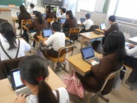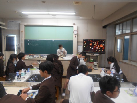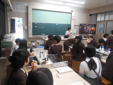電子顕微鏡を使って火山灰の様子を観察していました。