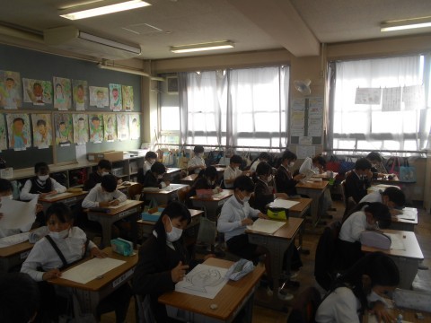 版画の下絵を板にうちしていました。みんな、とても集中していました。