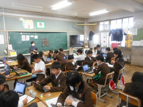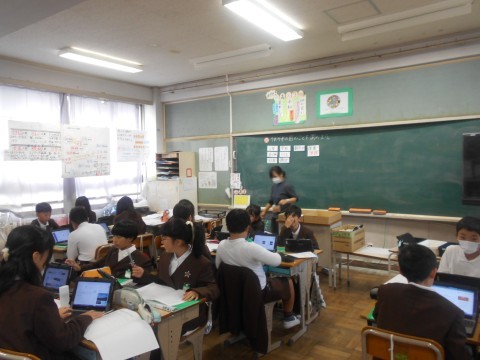 キラリの時間に各国の言葉、学校、仕事、環境、課題等を調べていました。日本や自分たちと比べてどう違うのかを調べたり考えたりもしていました。