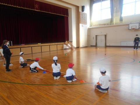 今日のユーカリ体育はボッチャの体験をしました。みんなとても上手でした。