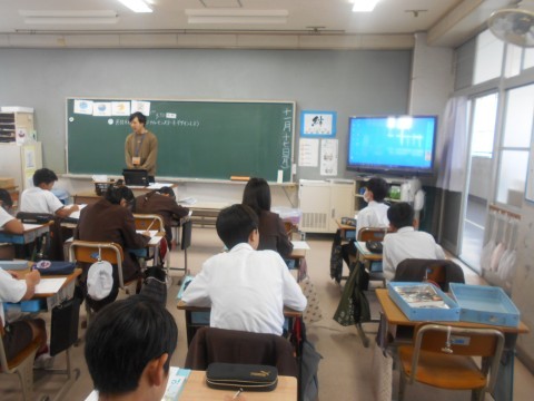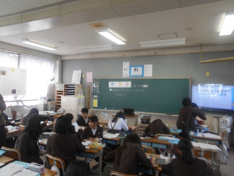 英語の表現を使ってオリジナルのモンスターのデザインをしていました。