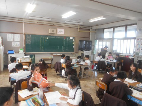 「そうだんにのってください」という教材で話し合い活動の学習をしていました。友だちの相談内容を確認したり、友だちの言ったことにつなげながら話し合ったりしていました。