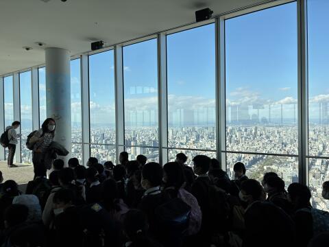 あべのハルカス展望台に到着しました!とてもいい天気に恵まれ、最高の眺望です!