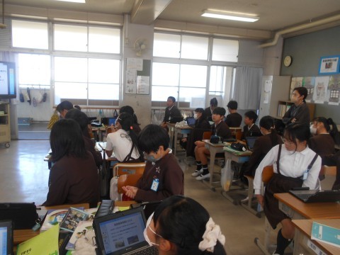 土地のつくりと変化の学習で、地震等について、グループで調べ、発表していました。