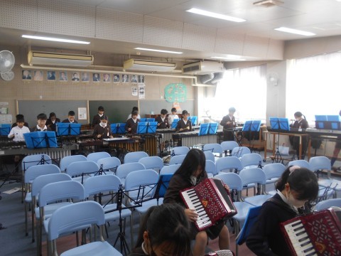 合奏の練習をしていました。元気いっぱい演奏していました。