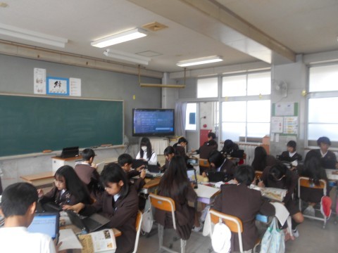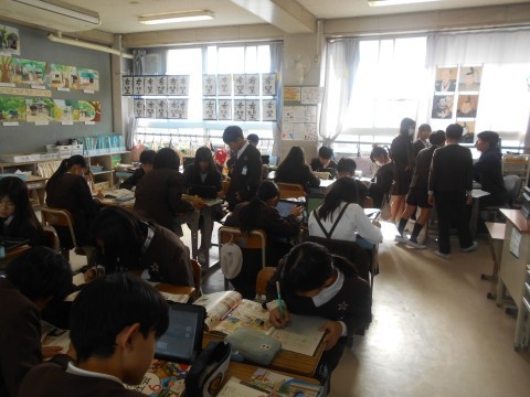 江戸時代の文化や学問について調べ、まとめて、グループでプレゼンする準備をしていました。