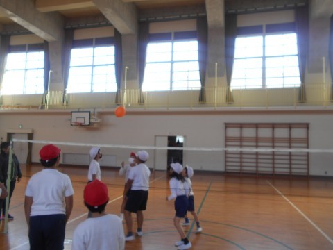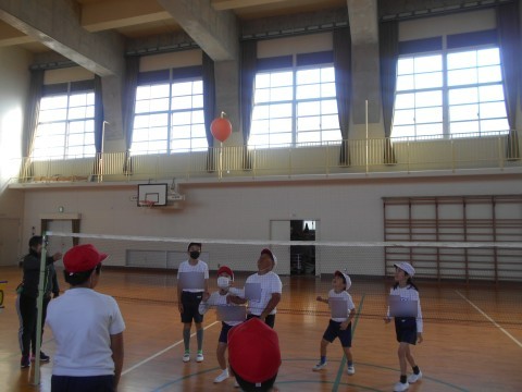 風船バレーにチャレンジしていました。