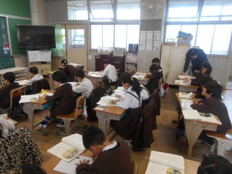 「たぬきの糸車」の学習をしていました。好きな場面を見つける活動をしていました。