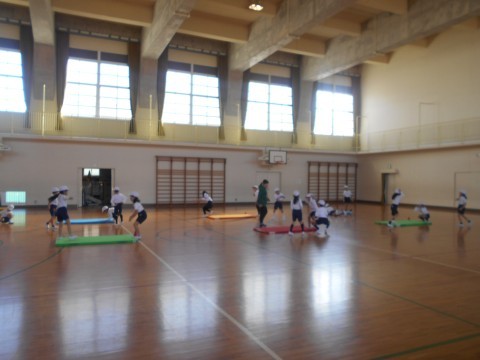 マット運動をしていました。準備や後片付けもしっかりできました。