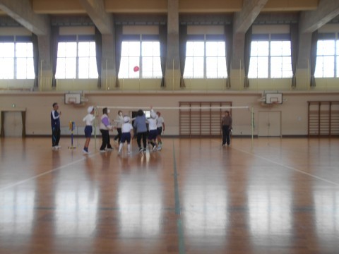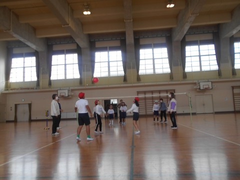 風船バレーボールにチャレンジしていました。みんなで協力して頑張りました。