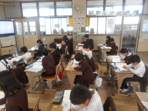 「みきのたからもの」の学習をしていました。友だちに紹介するために、好きなところと理由を文章に書いていました。