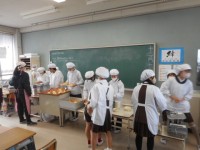 今日の給食は、ごはん、さつま汁、肉大根、ういろう、牛乳、でした。