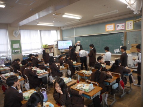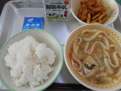 今日の給食は、ごはん、あんかけうどん、がね、ふりかけ、牛乳、でした。