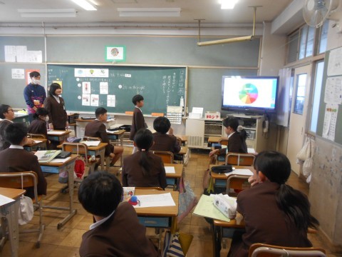 道案内の表現の学習をしていました。実際に友だちを目的地まで案内する活動をしていました。