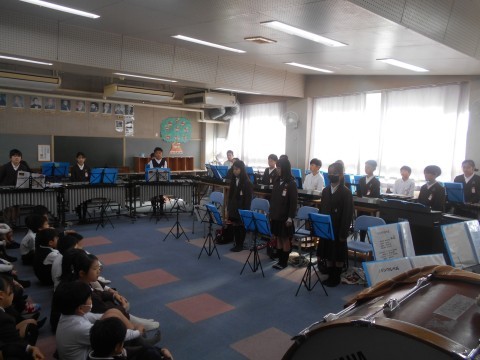 2年生を招待してコンサートをしました。一生懸命演奏していました。
