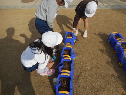 「見て!芽が出ているよ」