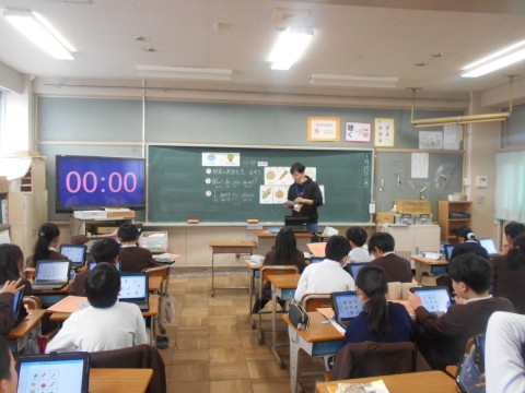 好きな野菜の名前をI want~の表現を使って英語で伝える学習をしていました。