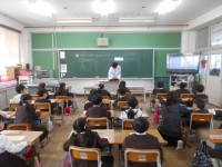 地域の方による朝の読み聞かせがありました。お話の世界に没頭していました。