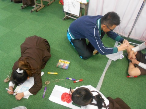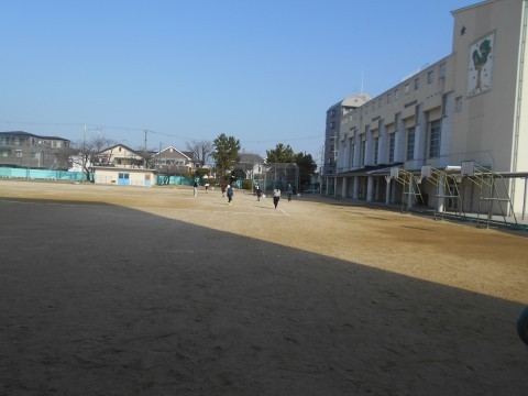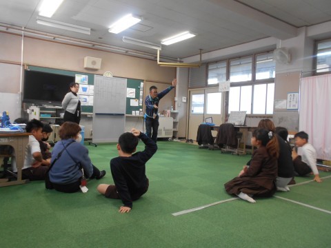 冬休みの思い出を交流していました。その後、袋で凧を作って運動場で遊びました。