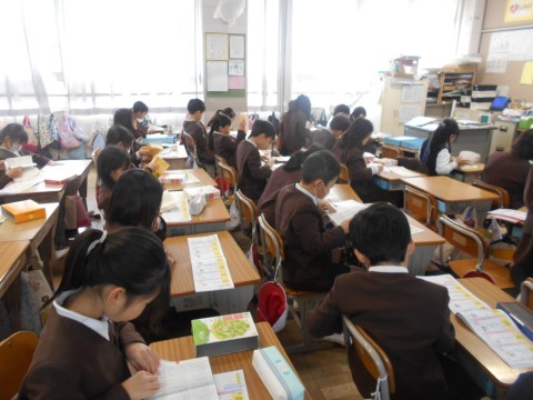 漢字の学習をしていました。辞書を引くのもとても素早いです。