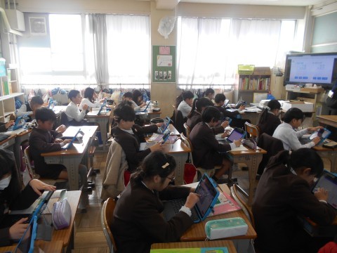 小数のかけ算の学習をしていました。筆算の仕方を考えていました。パソコンも活用して学習していました。