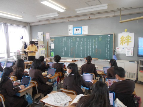 「大切にしたい言葉」「今、私は、ぼくは」について、文章の構成や資料を工夫して、パソコンのメモ機能を使って、原稿にまとめていました。