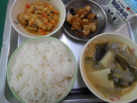 今日の給食は、ごはん、みそ汁、焼き鯖のみぞれ掛け、卯の花、牛乳、でした。