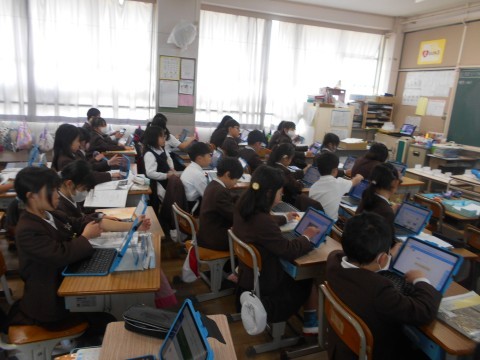 堺市の昔から続く店についてパソコンを活用して調べまとめていました。