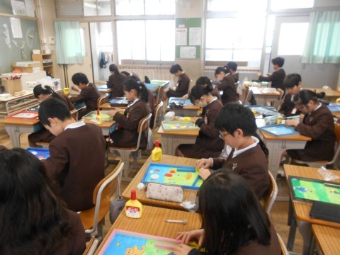 コリントゲームを作っていました。ビー玉がスムーズに動くように丁寧に工夫して作っていました。